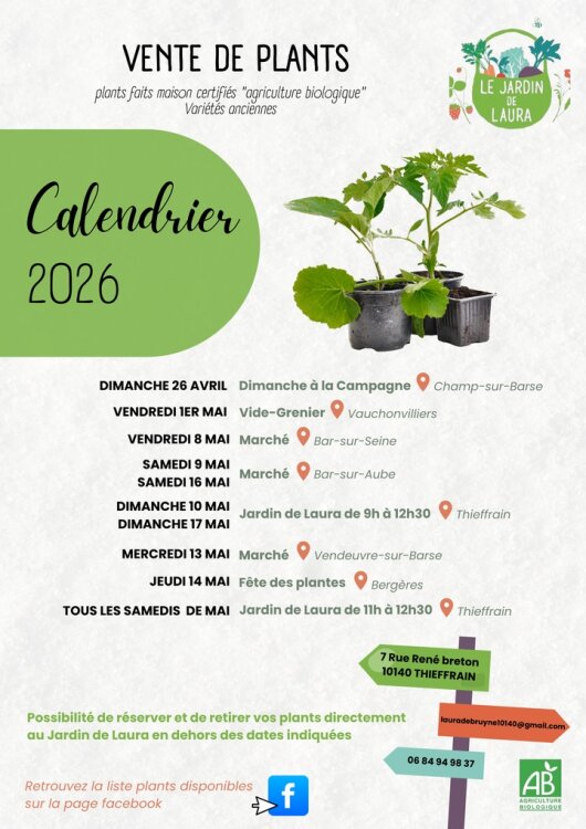 Pour la vente de plants retrouvez moi à Champ-sur-Barse, Vauchonvilliers, Bar-sur-Seine, Thieffrain, Vendeuvre-sur-Barse, Bergères.